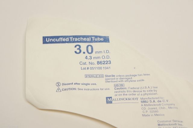 86223 ~ Mallinckrodt Uncuffed Trach Tube 3.0mm ID ~ Lot of 2