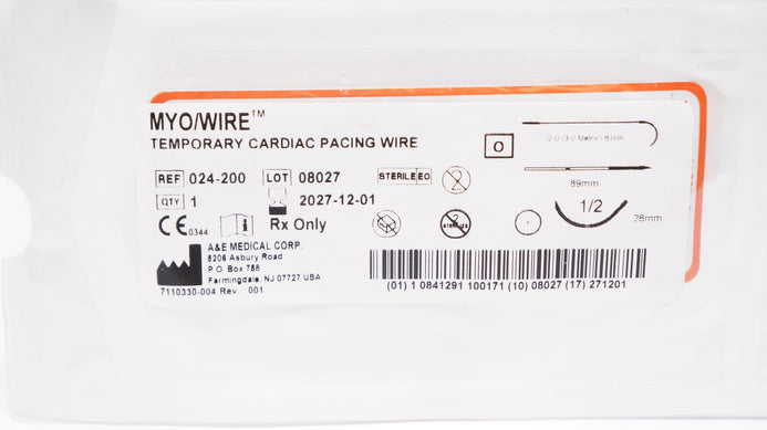 - A&E 024-200 2-0 Myo/Wire Medical Temporary Cardiac Pacing Wire 1/2c 26mm, 61cm