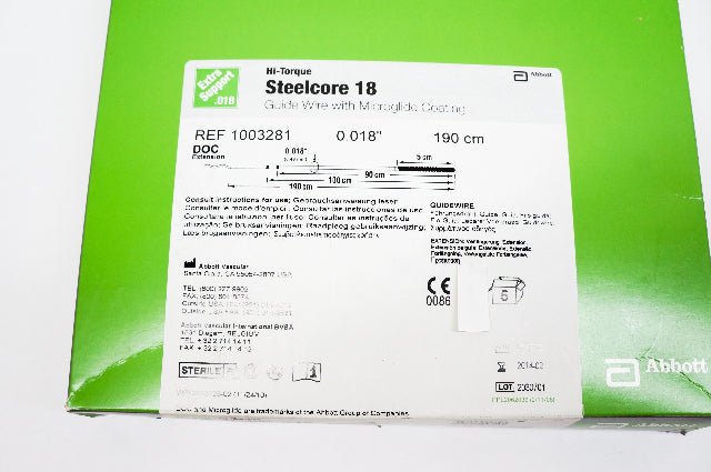 - Abbott 1003281 Hi-Torque Steelcore 18 Guide Wire 0.018inch x 190cm (x) -Box of 5