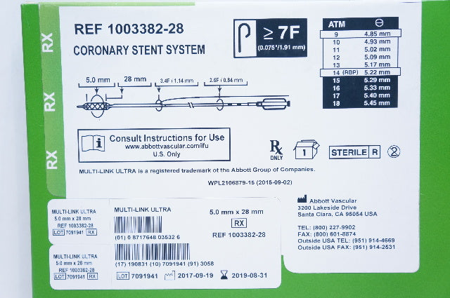 - Abbott 1003382-28 Multi-Link ULTRA Coronary Stnt System 7F, 5mm x 28mm (x)
