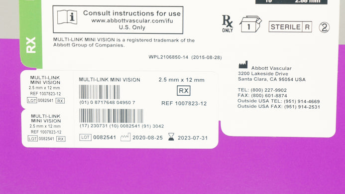 - Abbott 1007823-12 Multi-Link Mini Vision Coronary Stnt System 2.5mm x 12mm (x)
