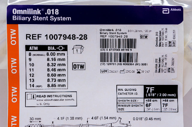 - Abbott 1007948-28 Omnilink .018 Biliary Stnt System 8.0 x 28mm, 135mm (x)