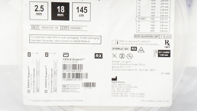 - Abbott 1804250-18 XIENCE Skypoint Everolimus Eluting Coronary Stent System 18mm