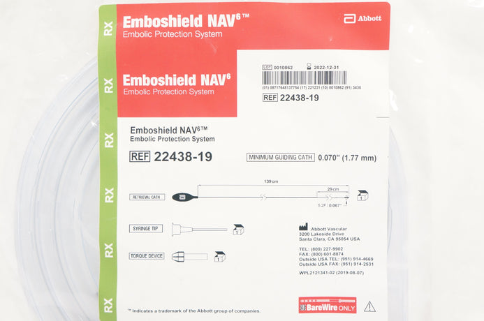 - Abbott 22438-19 Emboshield NAV Embolic Protection System 0.070inch x 139cm