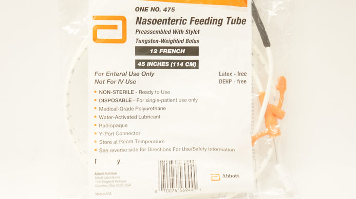 - Abbott 475 Nasoenteric Feeding Tube Preassembled W/Stylet 12Fr x 45inch (x)