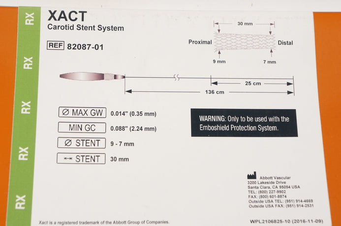 - Abbott 82087-01 XACT Carotid Stnt System 0.014inch x 9-7mm x 30mm (x)