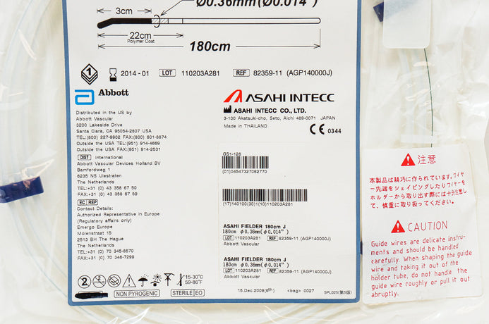 - Abbott 82359-11 ASAHI PTCA Guide Wire FIELDER 180cm J 0.014inch x 180cm (x)