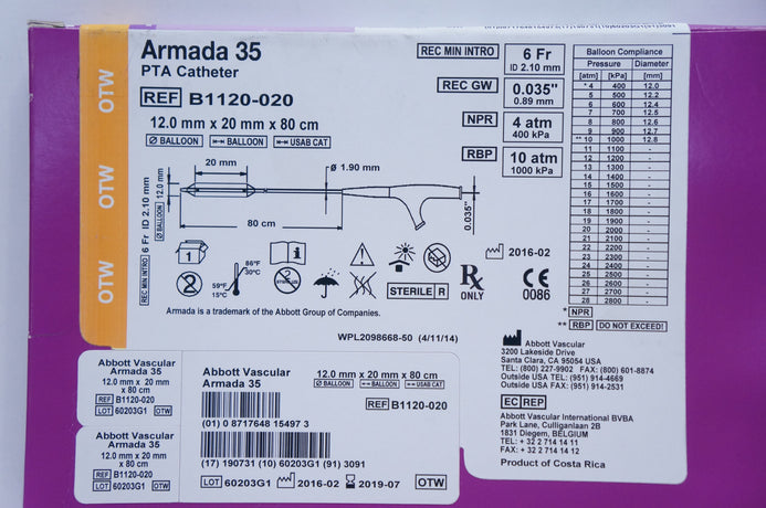 - Abbott B1120-020 Armada 35 PTA Cath. 12mm x 20mm x 80cm (x)