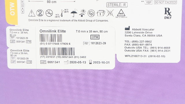 - Abbott Vascular 1012623-39 Omnilink Elite Stnt System 7.0mm x 39mm x 80cm (x)