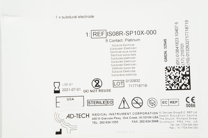 - AD-Tech IS08R-SP10X-000 8Contact Platinum Subdural Electrode 10 x 4.0 x 2.3mm(x)