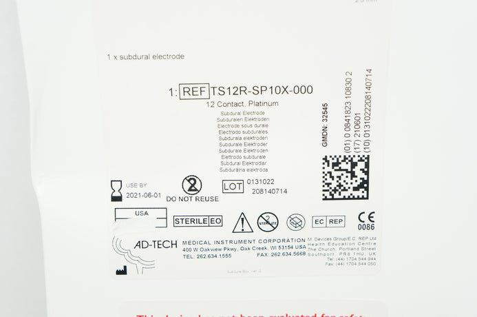 - AD-TechTS12R-SP10X-000 12 Contact Platinum Subdural Electrode 10 x 4.0 x2.3mm(x)
