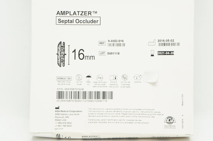 - AGA Medical 9-ASD-016 Amplatzer Septal Occluder 16mm (x)