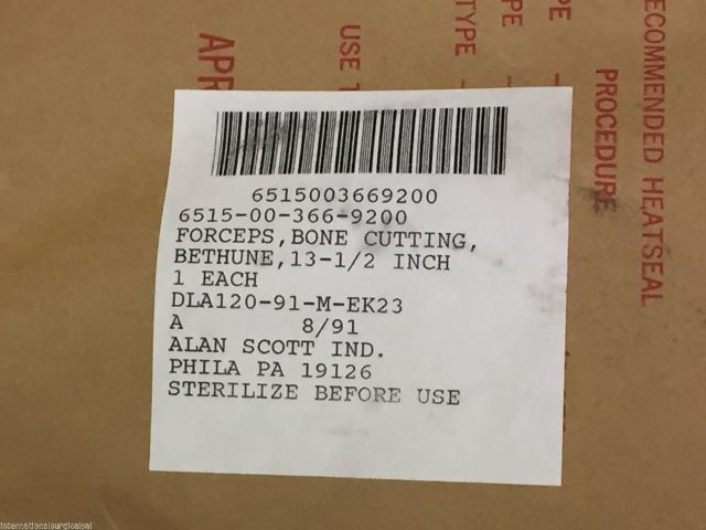Iii part name assigned by controlling agency: forceps bone cutting bethune 13.5" lg cupped screw lock crs