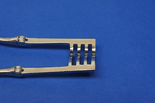 Special features: hinged arms; each w/four 1 inch teeth; rachet handle w/finger guard; 5-1/2 iin. max opening