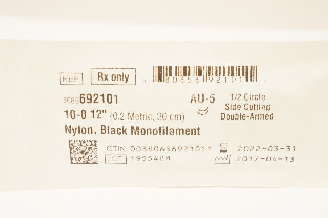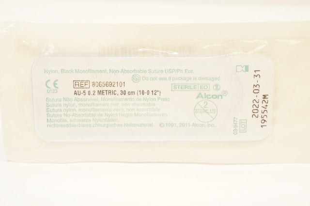 - Alcon 8065692101 10-0 Stre Black Monofilament AU-5 1/2c Side Cutting 12inch (x)