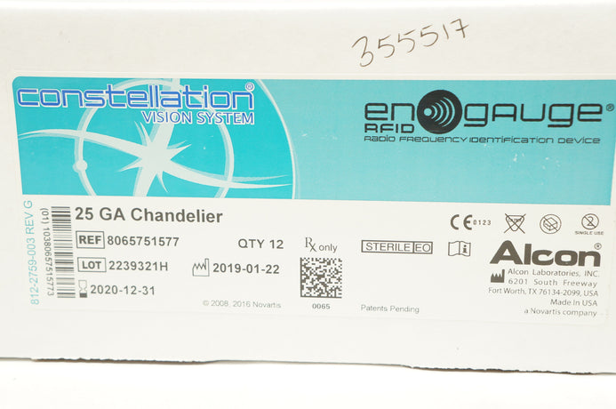 - Alcon 8065751577 ENOGAUGE RFID 25Ga Chandelier - Box of 12 (x)