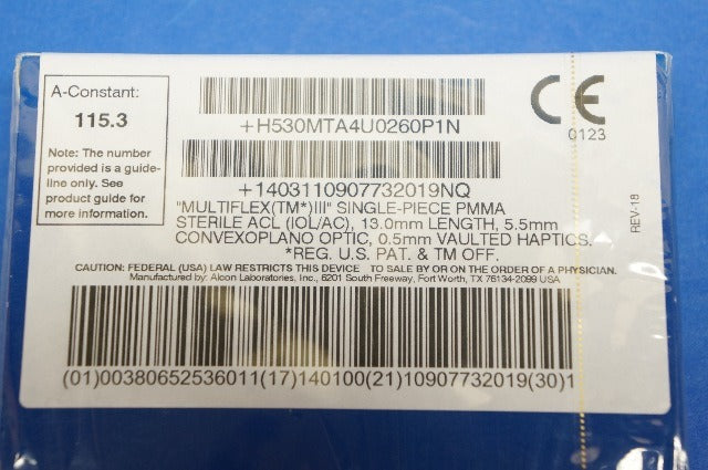 Alcon Laboratories MTA4U0 Intraocular Lens 14.0D