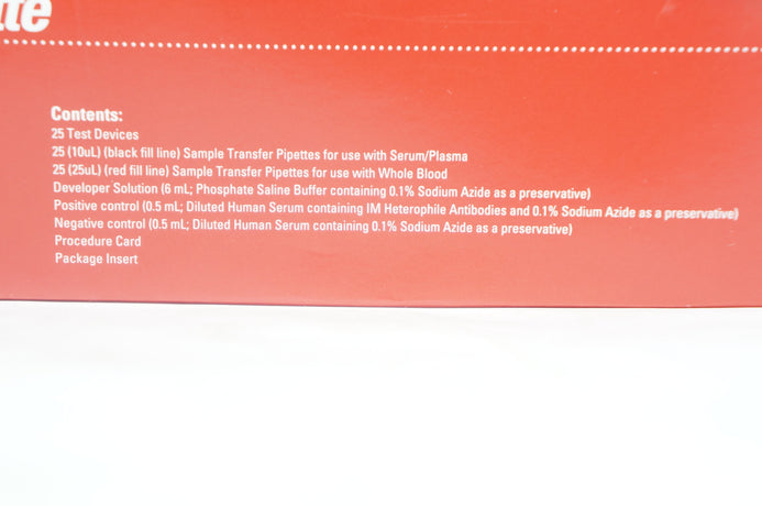 25 25uL red fill line sample transfer pipettes for use with Whole Blood