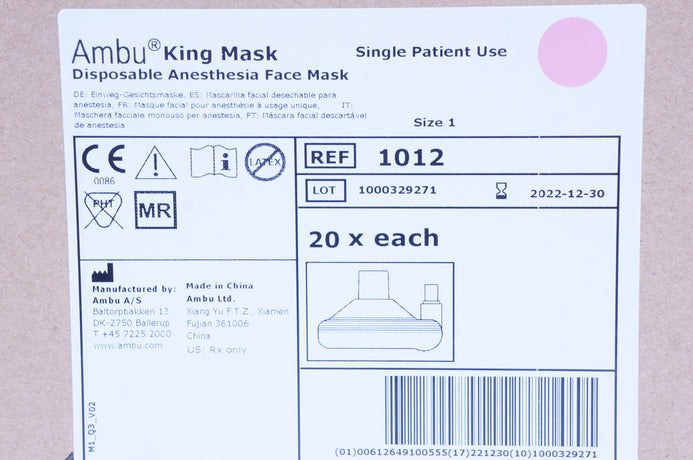 - Ambu 1012 King Disposable Anesthesia Face Mask Size 1 - Box of 20