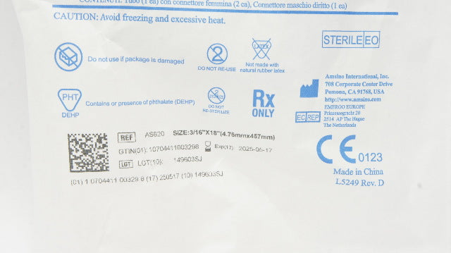 Amsino AS820 AMSure Suction Connecting Tube 3/16inch x 18inch