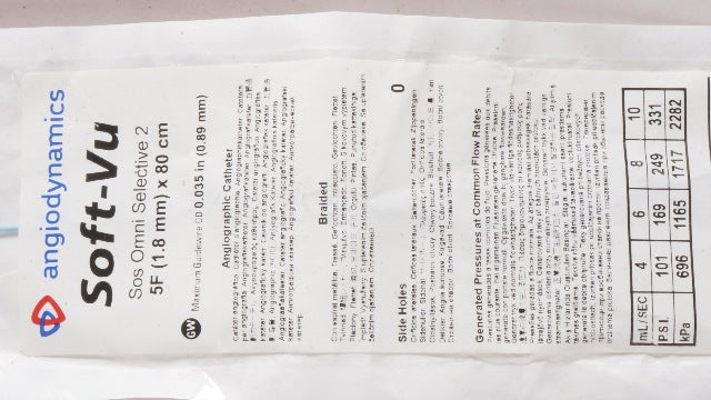 AngioDynamics 10712002 Soft-Vu Sos Omni Selective 2 Angiographic Catheter 5F x 80cm