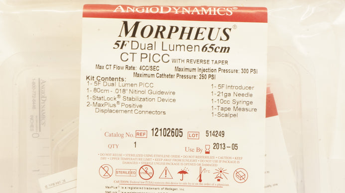 - AngioDynamics 12102605 Morpheus 5F Dual Lumen 65cm CT PICC with Reverse Taper(x)