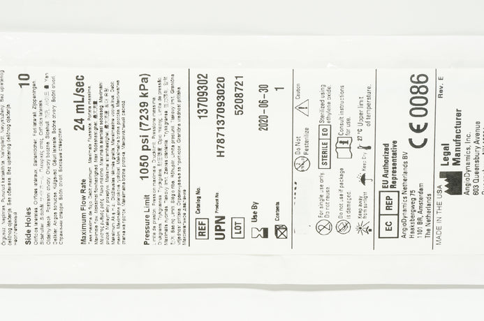 Non Braided, 10 Side Holes, Maximum Flow Rate 24 mL/sec, Pressure Limit 1050psi