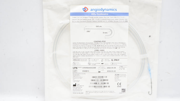 - AngioDynamics H7878105351500 ADx Guidewire 150cm x 3mm x .035inch (x)