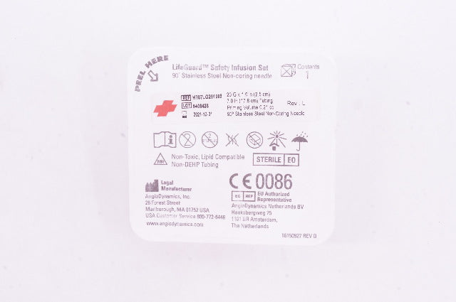 AngioDynamics H787LG201005 LifeGuard Safety Infusion Set 20G x 1.0inch