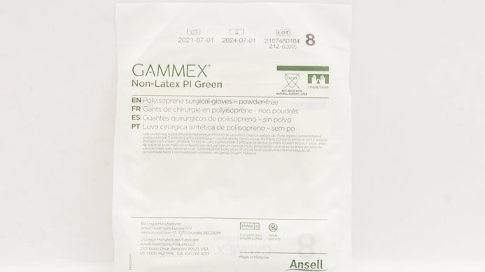 Ansell 20685280 GAMMEX® Non-Latex PI Green Surgical Gloves, Size 8