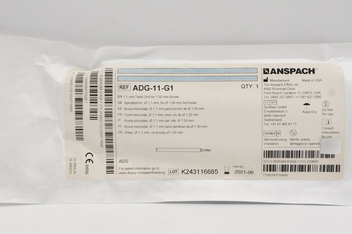 - Anspach ADG-11-G1 1.1mm Twist Drill for 1.50mm Screw (x)
