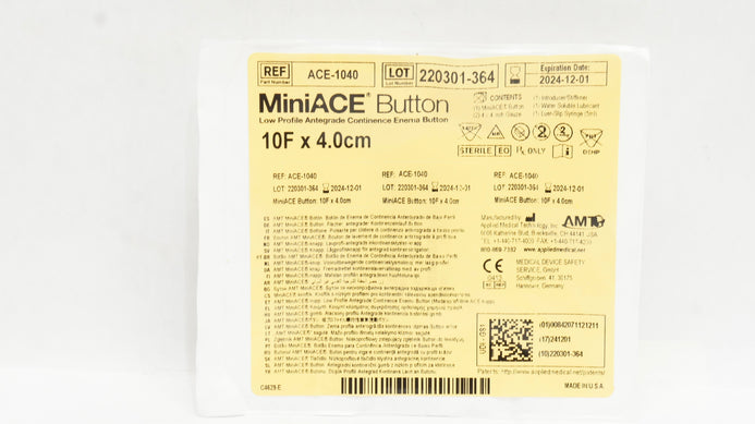 - Applied Medical ACE-1040 MiniACE Antegrade Continence Enema Button 10F x 4.0cm