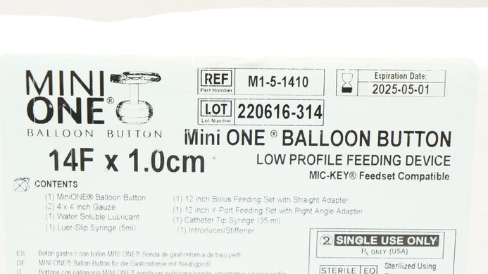 Applied Medical M1-5-1410 Mini One Balloon Button Low Profile Gastrostomy Feeding Tube 14F x 1.0cm
