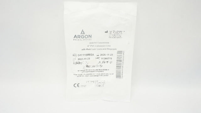- Argon 041115002A PVC Extension Line w/Male Luer Lock and Stopcock, 6inch