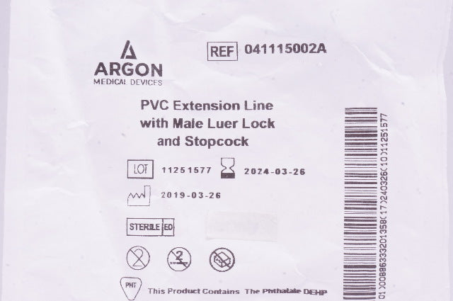 - Argon 041115002A PVC Extension Line With Male Luer Lock and Stopcock