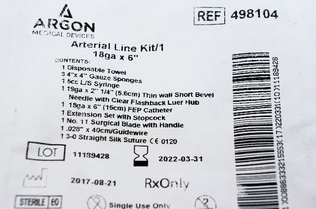 - Argon 498104 Arterial Line Kit/1 18Ga x 6inch