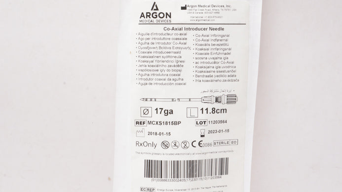 Argon Medical MCXS1815BP Co-Axial Introducer Ndle, 17Ga x 11.8cm (x)