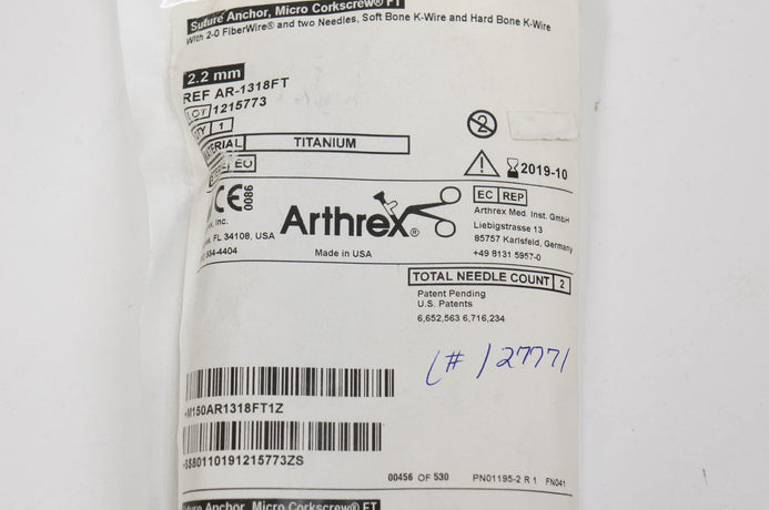 - Arthrex AR-1318FT Stre Anchor, Micro Corkscrew FT 4mm x 2.2mm (x)
