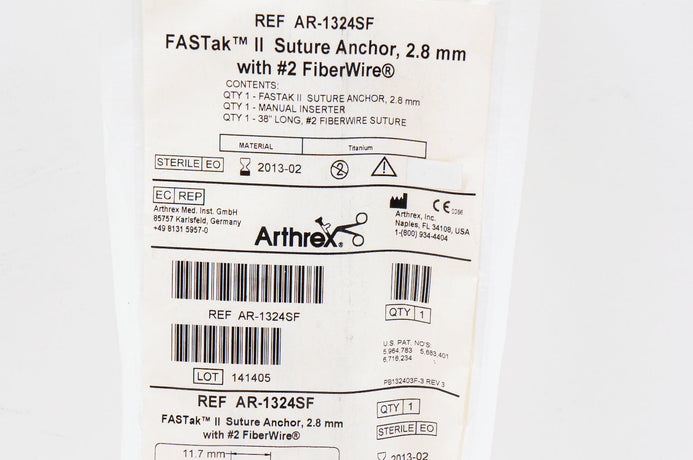 - Arthrex AR-1324SF FASTak II Suture Anchor, 2.8mm (x)