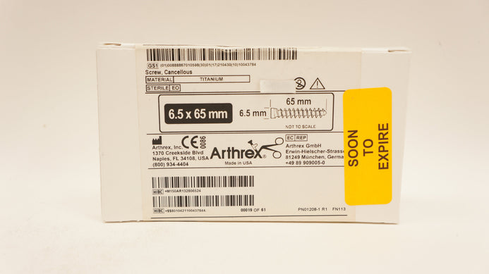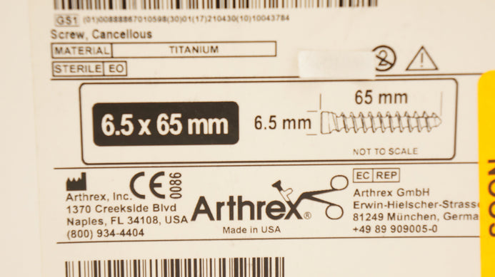 - Arthrex AR-13280-65 Titanium Screw Cancellous 6.5 mm x 65 mm (x)