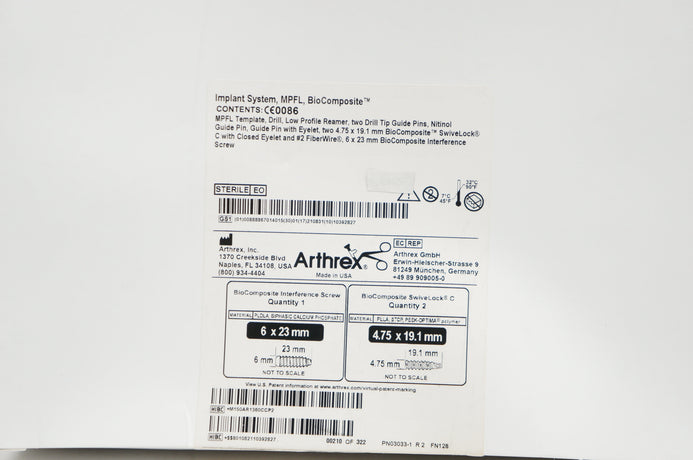 - Arthrex AR-1360C-CP Implant System, MPFL, BioComposite 6 x 23mm 4.75 x 19.1mm(x)