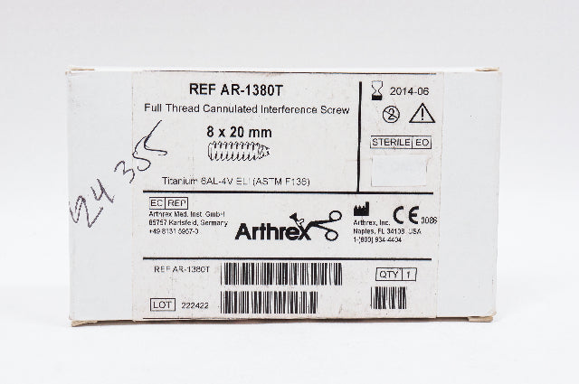 - Arthrex AR-1380T Full Thread Cannulated Interference Screw 8 x 20mm (x)