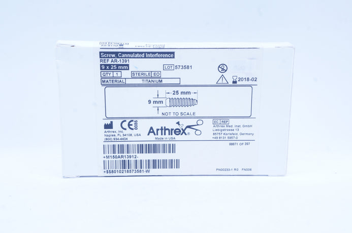 - Arthrex AR-1391 Screw Cannulated Interference 9 x 25mm (x)