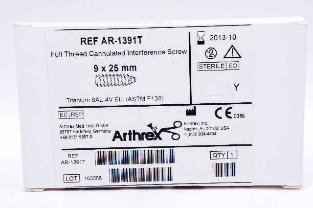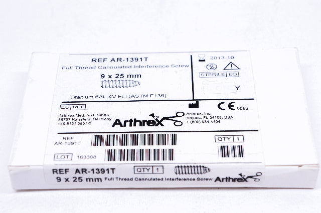 - Arthrex AR-1391T Full Thread Cannulated Interference Screw 9 x 25mm (x)