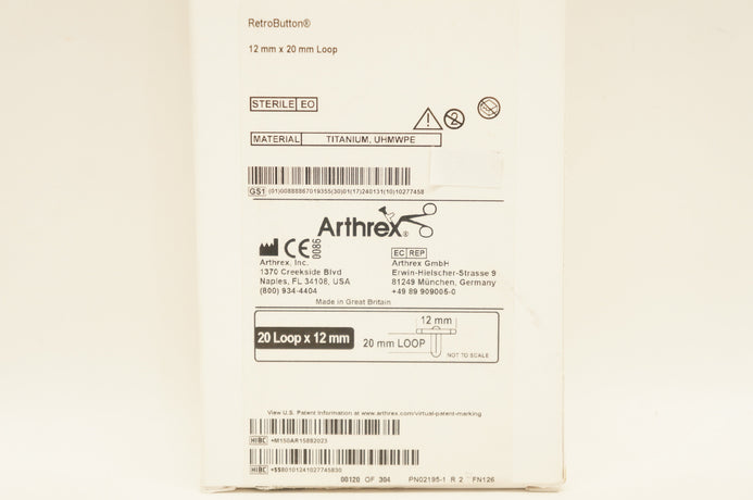 - Arthrex AR-1588-20 RetroButton 12mm x 20mm Loop