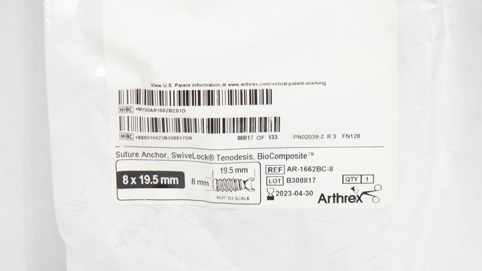 - Arthrex AR-1662BC-8 Stre Anchor SwiveLock Tenodesis BioComposite 8 x 19.5mm (x)