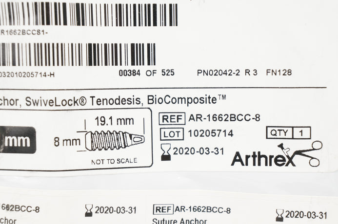 - Arthrex AR-1662BCC-8 Stre Anchor SwiveLock Tenodesis BioComposite 8 x 19.1mm (x)