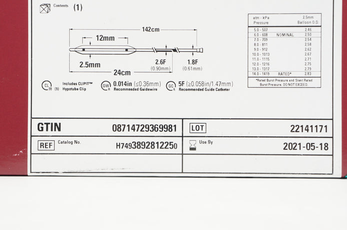 - Boston Scientific H7493892812250 Maverick PTCA Dilatation Cath. 2.5mm x 12mm (x)