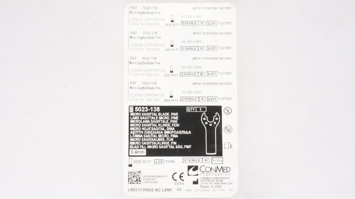 - ConMed 5023-138 Micro Sagittal Blade Fine 9.5 x 25.5 x 0.4mm