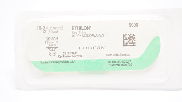 - Ethicon 9000 10-0 Ethilon, CS160-6, 5.5mm 1/2c Spatula, 12inch (x)